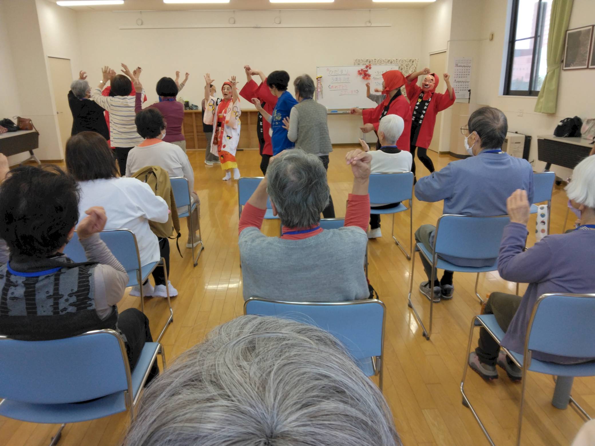10月9日(木)ひだまりは3周年を迎え 記念お楽しみ会を開催しました。円ひょっとこ踊りの会による🎵お祭りマンボ🎵ドンパン節🎵長生き音頭 etc. ハ-モニカの千葉さんによる演奏🎼赤とんぼ🎼北の国から🎼街の灯り🎼運命 etc. で楽しみました🎊